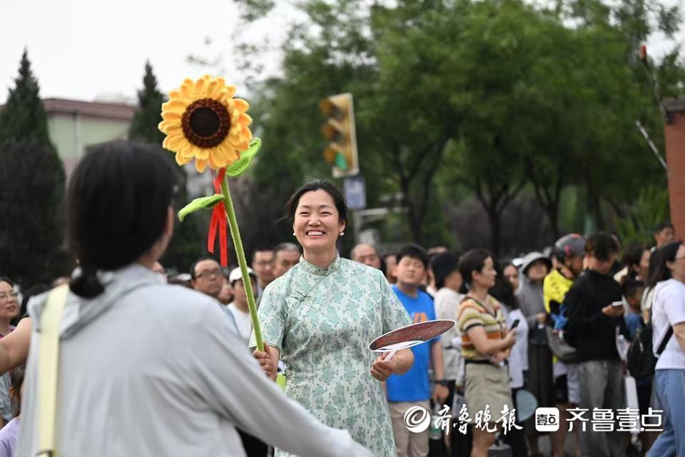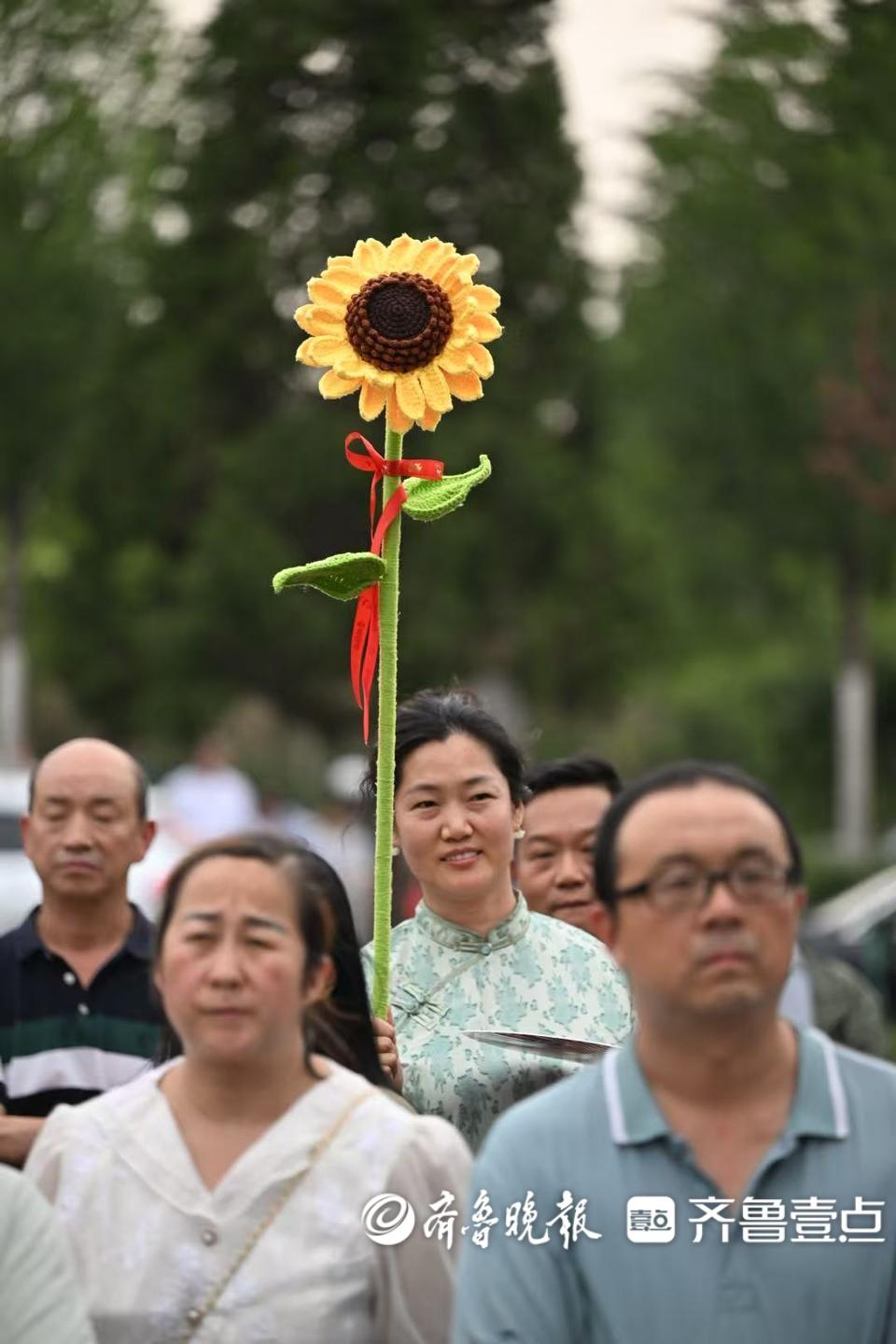 人群中最亮眼!家长手举一米多高手工向日葵迎接考生